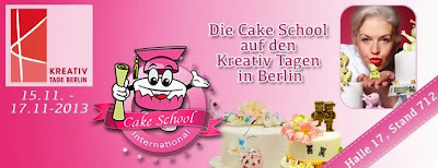 bevor ich noch dazu komme Euch von meinem letzten Wochenende bei der Cake International in Birmingham zu berichten, möchte ich auf die nächste Messe hinweisen: am kommenden Wochenende werde ich auf den Kreativ Tagen Berlin, am Stand der Cake School International sein. Wir werden sich kleine Vorführungen machen, aber man kann sich auch über das große Kursangebot in der Schule erkundigen.
